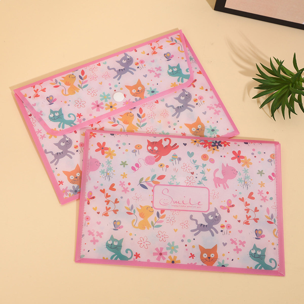 2Pcs PP Document Folders Filing Envelopes Plastic Envelopes File Holder Filing Document Poly Envelope with Snap Button Closure for A5 Letter Paper Size