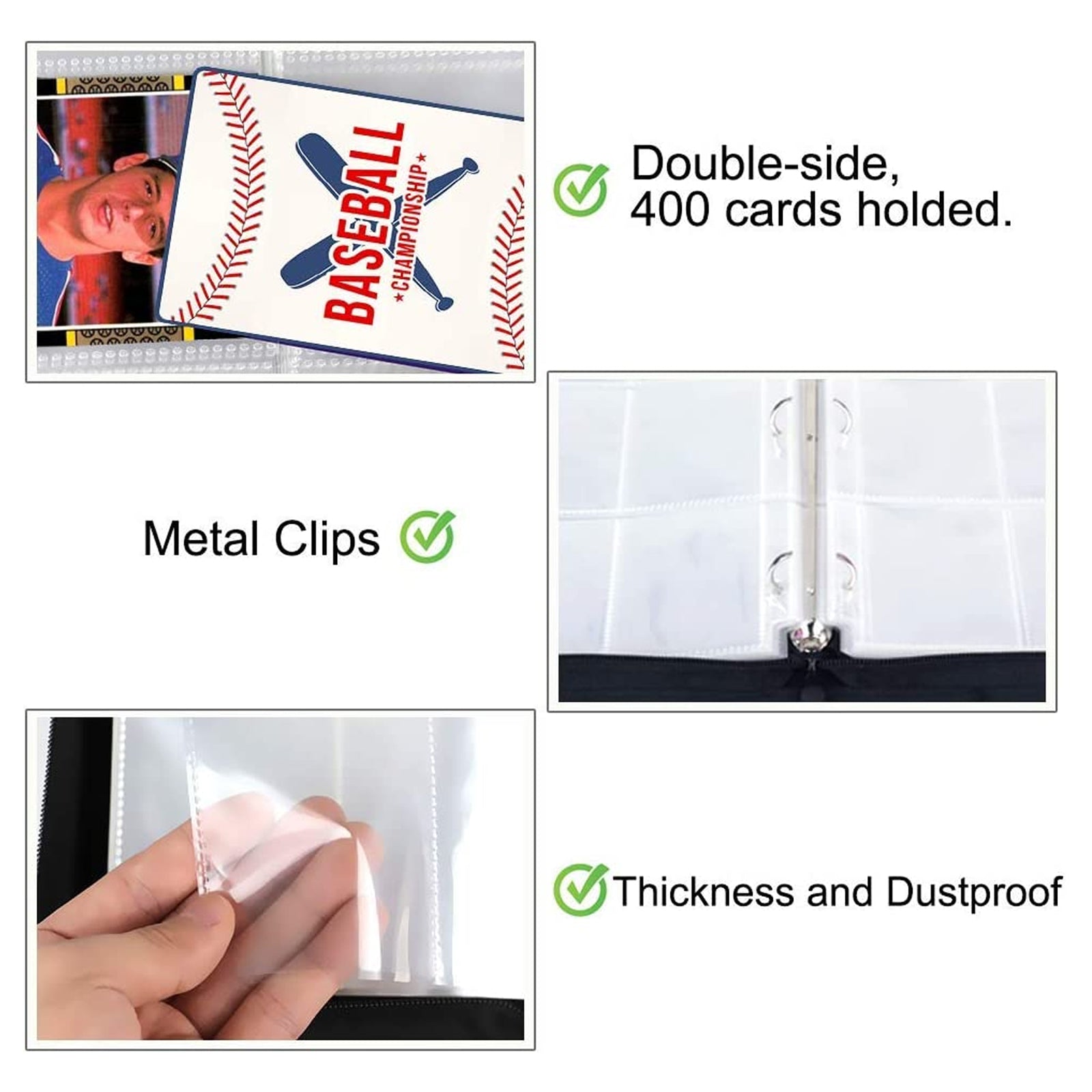 Baseball Card Binder Sleeves for Trading Cards, Baseball Card Sleeves Card Holder Protectors Set for Football Cards and Sports Cards (Holds Up to 400)